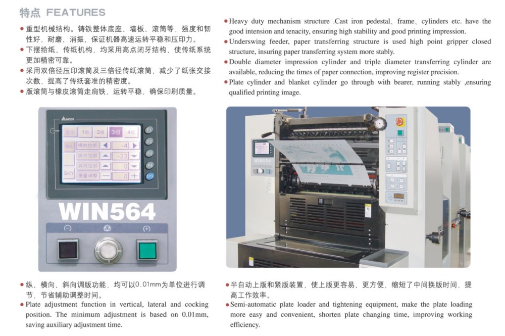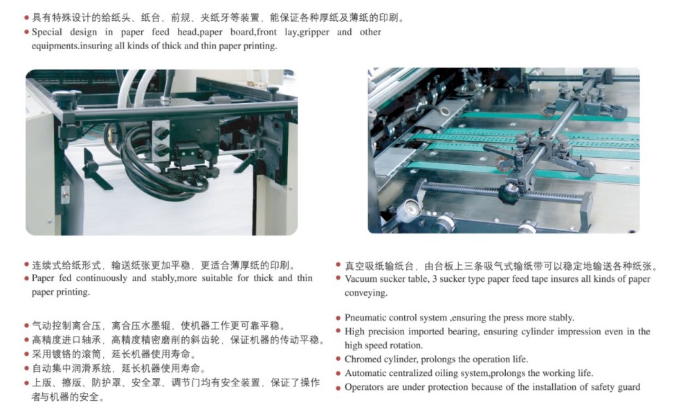 A2 4 色短部印刷オフセット印刷機に関しては、信頼性の高い高性能モジュールが組み込まれており、短部印刷タスクに最適です。これらのモジュールには、高精度のローラーとギア、堅牢な紙送り機構、正確な紙位置合わせシステム、安定したインク供給システムが含まれています。これは、特に短部数のジョブにおいて、高品質、効率的、コスト効率の高いカットシート カラー印刷に対する市場のニーズを満たします。 0.04mmの薄紙から0.4mm厚のボール紙まで幅広い紙厚に対応します。また、タッチスクリーン コントロールと直感的なプログラミング インターフェイスにより、すべての設定と印刷パラメータを簡単にスマートに調整できます。