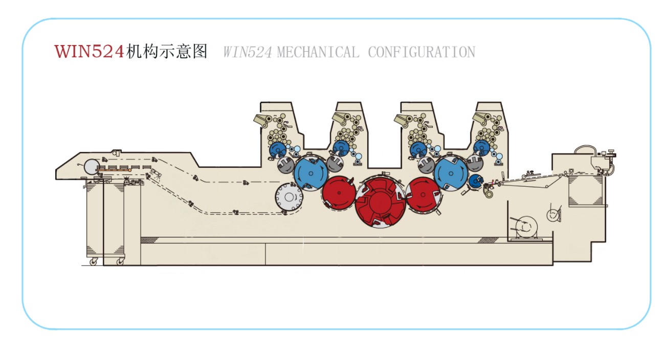 8)スイングアーム給紙機構と紙搬送機構はハイポイントクローズドジョー構造を採用し、各印刷ユニット間で用紙を正確かつ確実に移動させます。